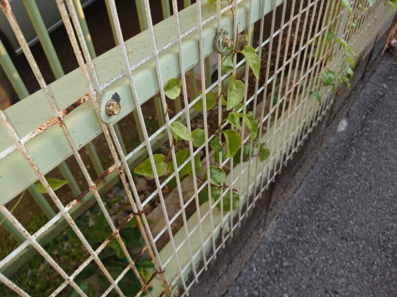 ツルは思惑通りに金網フェンスに伸びてきております!!!