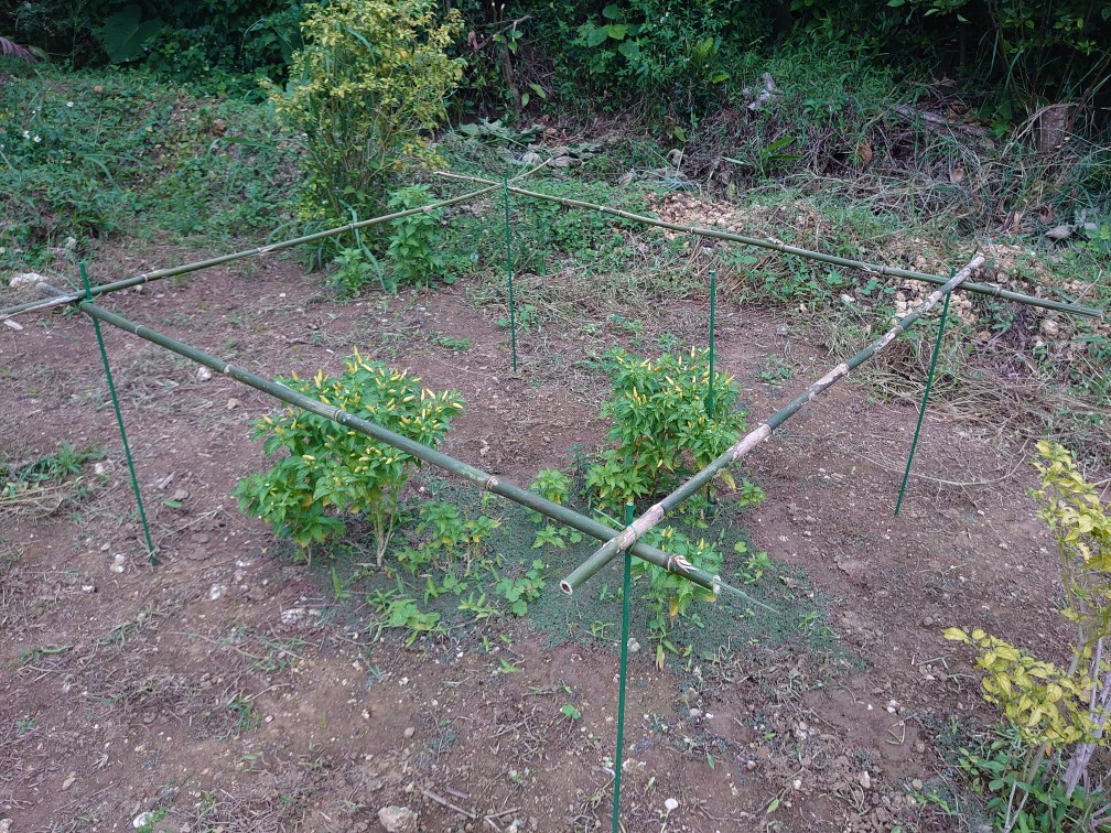 余っていた支柱で囲いスペースを作り