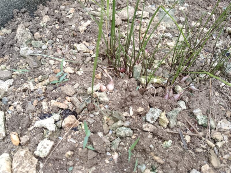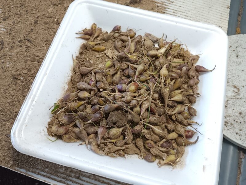 昨年は種球にした小さ目島らっきょうも積極的に