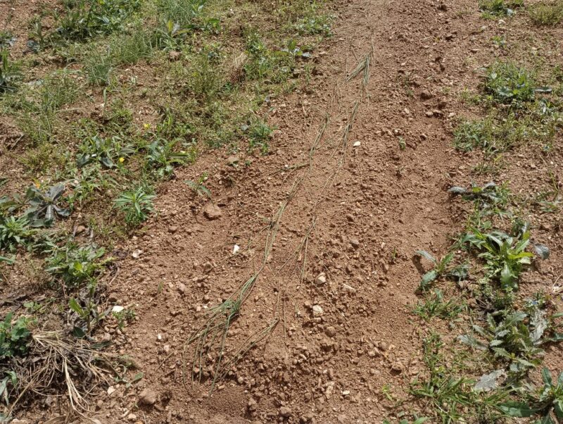収穫後の畝に植え付けていた島らっきょう苗ですが