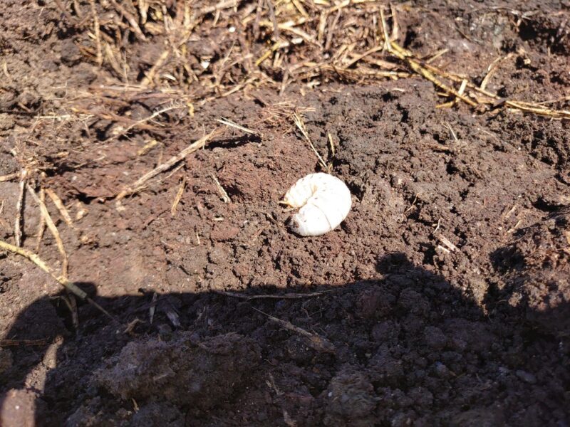 堆肥の中には、カブトムシ(サイカブト)の幼虫がゴロゴロw