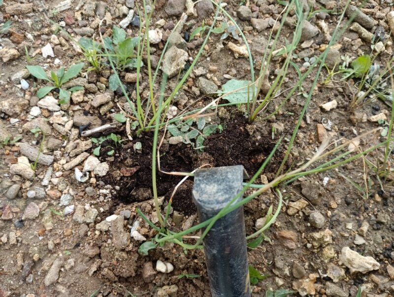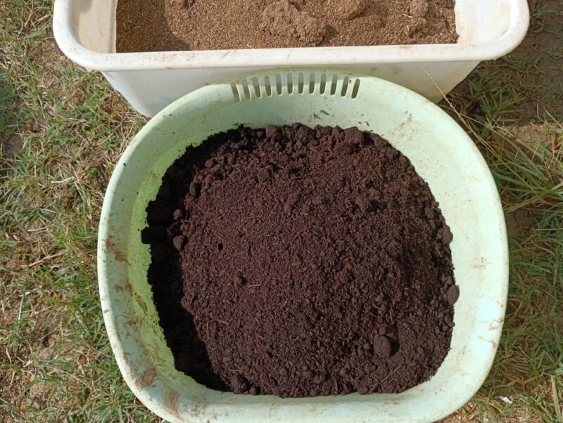 完熟牛糞堆肥たちを一握り分くらい流し込み