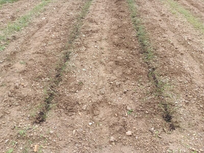 島らっきょう 2条植えの間に 深めの穴をあけて