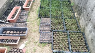 島らっきょう ポットに植え付けた島らっきょうの苗 その後